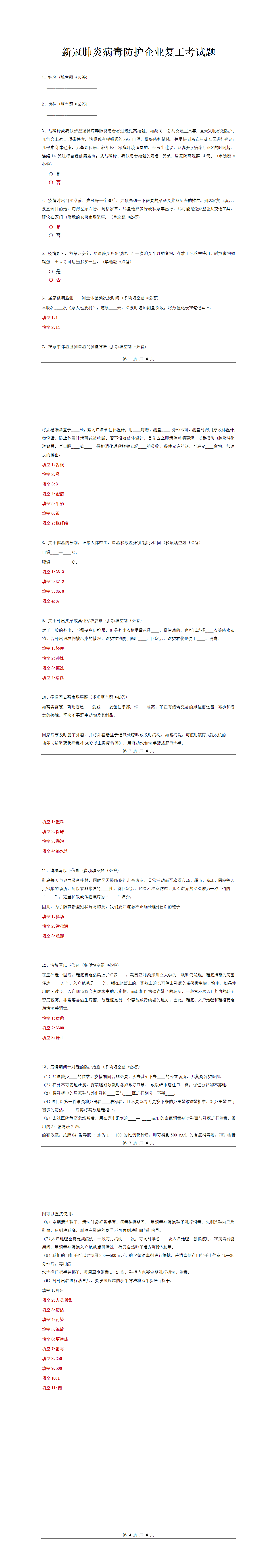 新冠肺炎病毒防護(hù)企業(yè)復(fù)工考試題