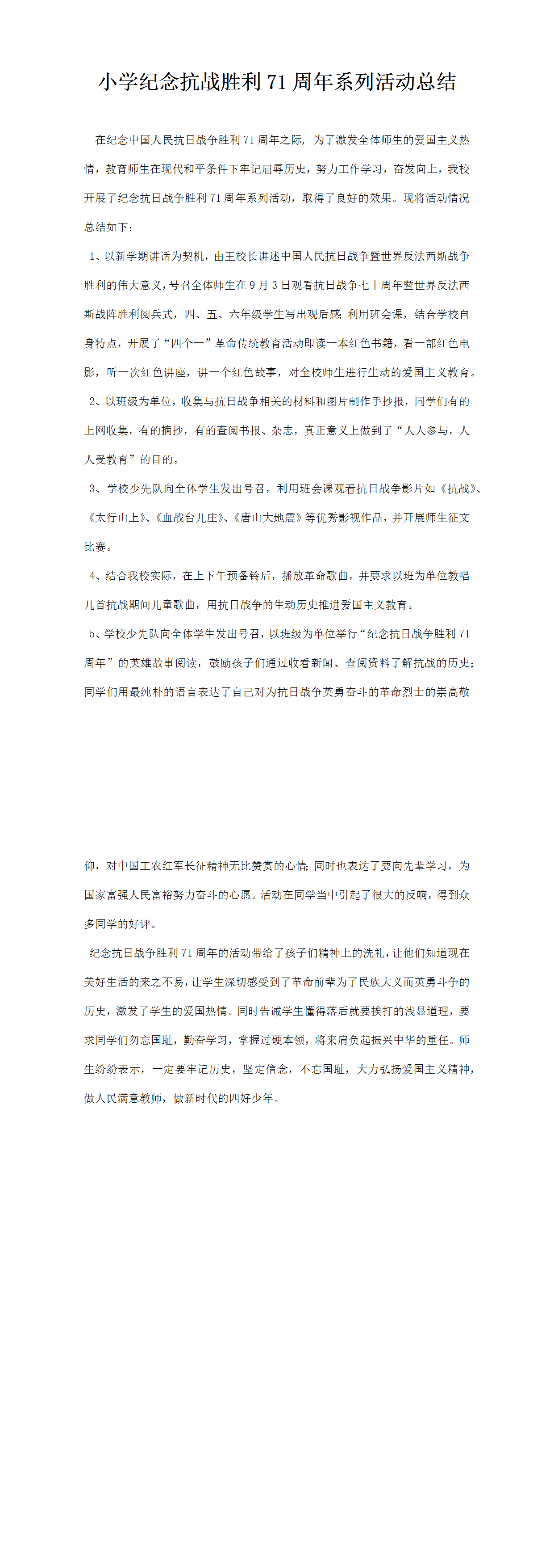 小學(xué)紀(jì)念抗戰(zhàn)勝利周系列活動總結(jié)