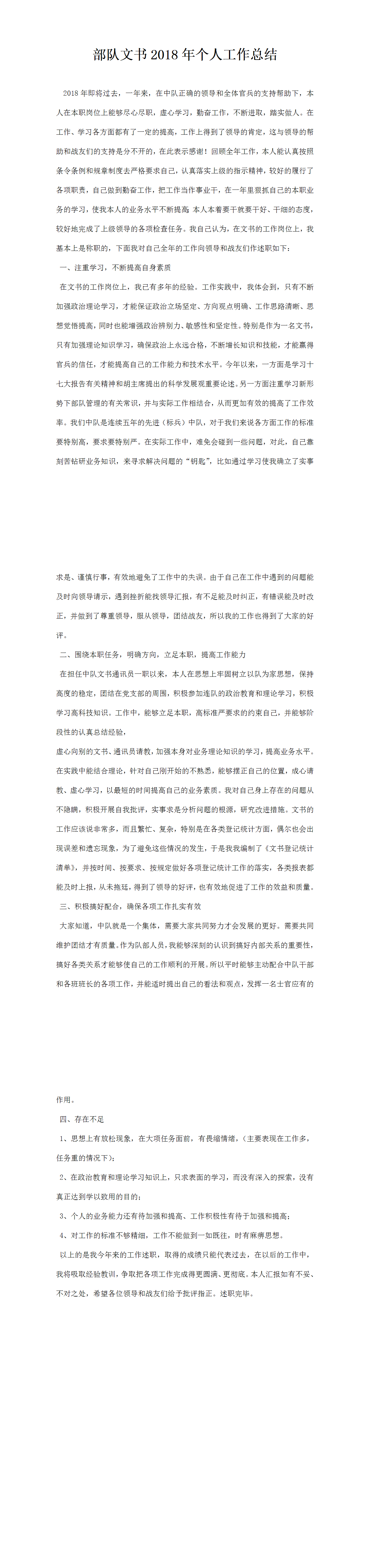 部隊(duì)文書(shū)個(gè)人工作總結(jié)