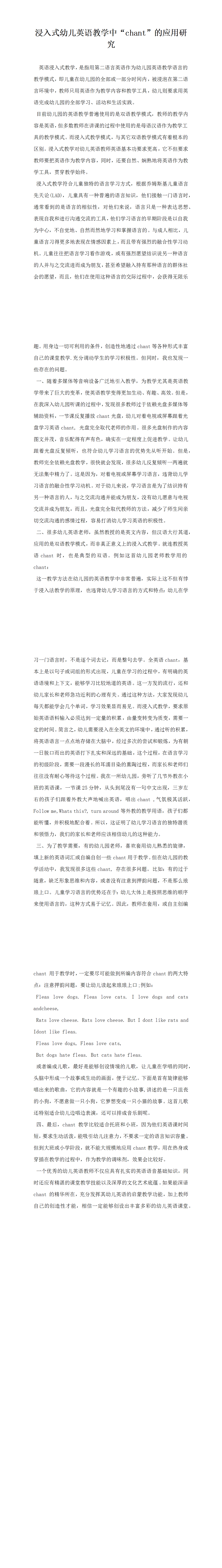 浸入式幼兒英語教學(xué)中chant的應(yīng)用研究