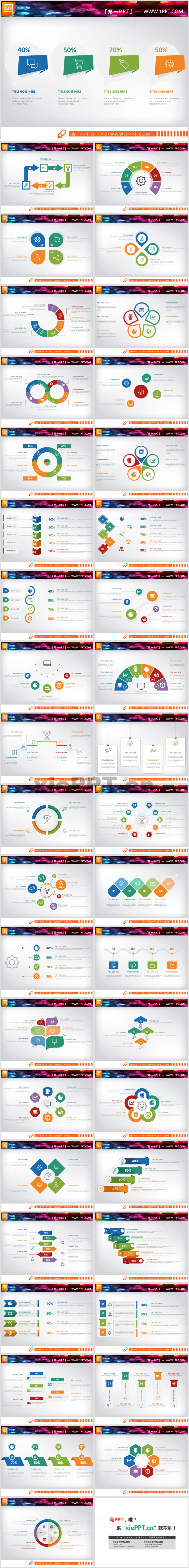 40張彩色扁平化綜合關(guān)系PPT圖表合集