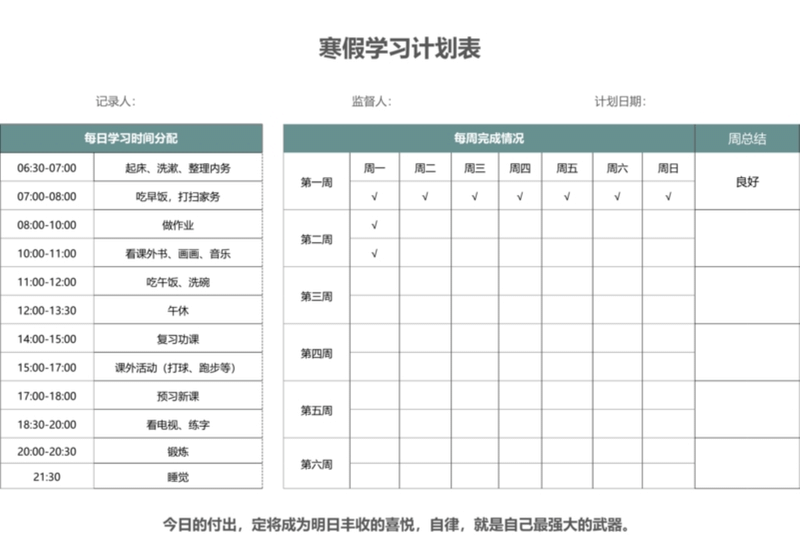 學(xué)生專用寒假學(xué)習(xí)計(jì)劃表